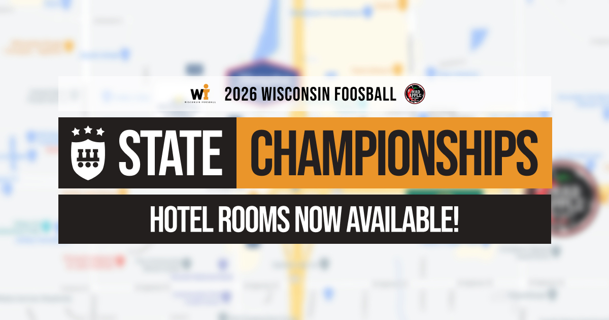 The 2026 Wisconsin Foosball State Championships takes place March 19-22, 2026, in Appleton, Wisconsin!